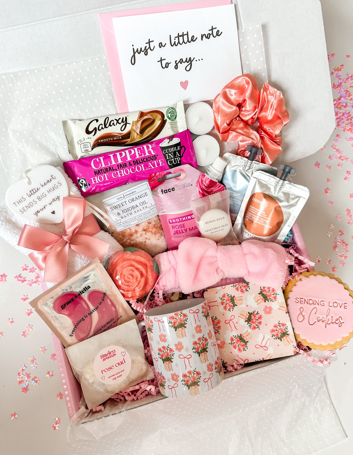 Our beautiful boxes curated with not only thoughtfully selected pamper goodies, but special gifts from our little studio!